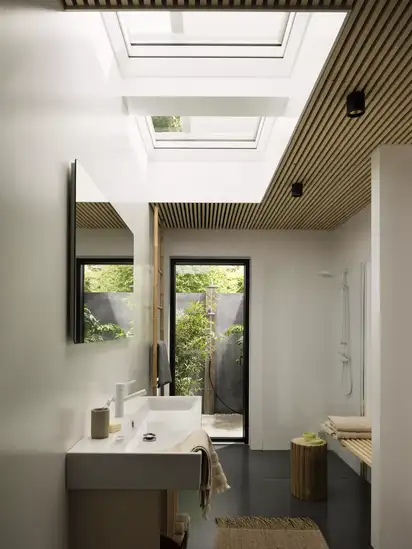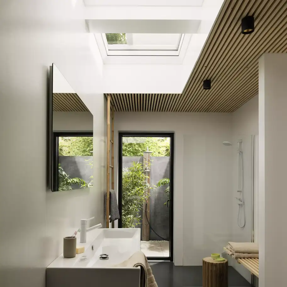 Upgrade your solar-powered anti-heat blind for flat roof windows with VELUX App Control for even more convenience. The app allows you to control your blind from anywhere.